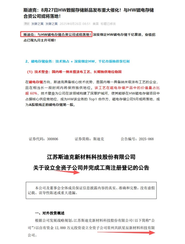 本号及备用专题研究号 “发酵之翼”(下文均为本号),通过多次深度分析与跟踪,挖掘斯迪克相关题材,紧密结合市场热点与公司自身业务布局,深度跟踪其在磁电存储领域的业务拓展,直至近期重要股权方正式入股,始终以客观专业的视角持续关注。