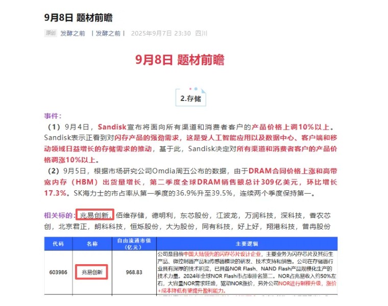 2025年9月8日:本号率先研判,紧扣存储行业涨价周期,聚焦公司NOR Flash全球第二市占率,以及“涨价+制程升级”的盈利提升逻辑。