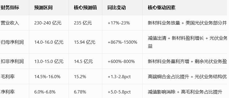 新材料业务(高端铜合金、AI 散热、高速连接器材料)技术壁垒高、客户结构优质、盈利能力强,长期成长逻辑清晰;但 2025 年受美国光伏双反关税与《大而美法案》双重政策打击,新能源业务巨额减值导致业绩 “深蹲”,形成短期业绩与长期价值的显著背离。是否正好是个机会?