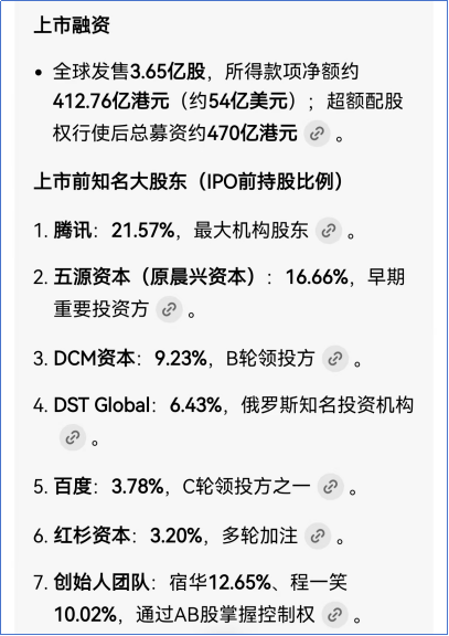 上市前,主要金主包括腾讯、五源资本、俄罗斯的DST、百度、红杉资本等等。