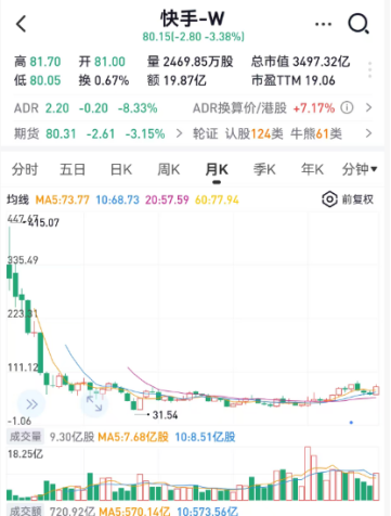 1.快手的股价深跌后,长期底部震荡,时长达到了四年半,随后逐渐走出底部区域,开始向上走了。