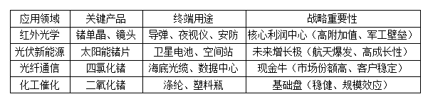 为了让大家对驰宏锌锗的锗产品版图有一个更清晰、结构化的认识,我们可以将其应用领域归纳为“两极一基”三大核心方向。