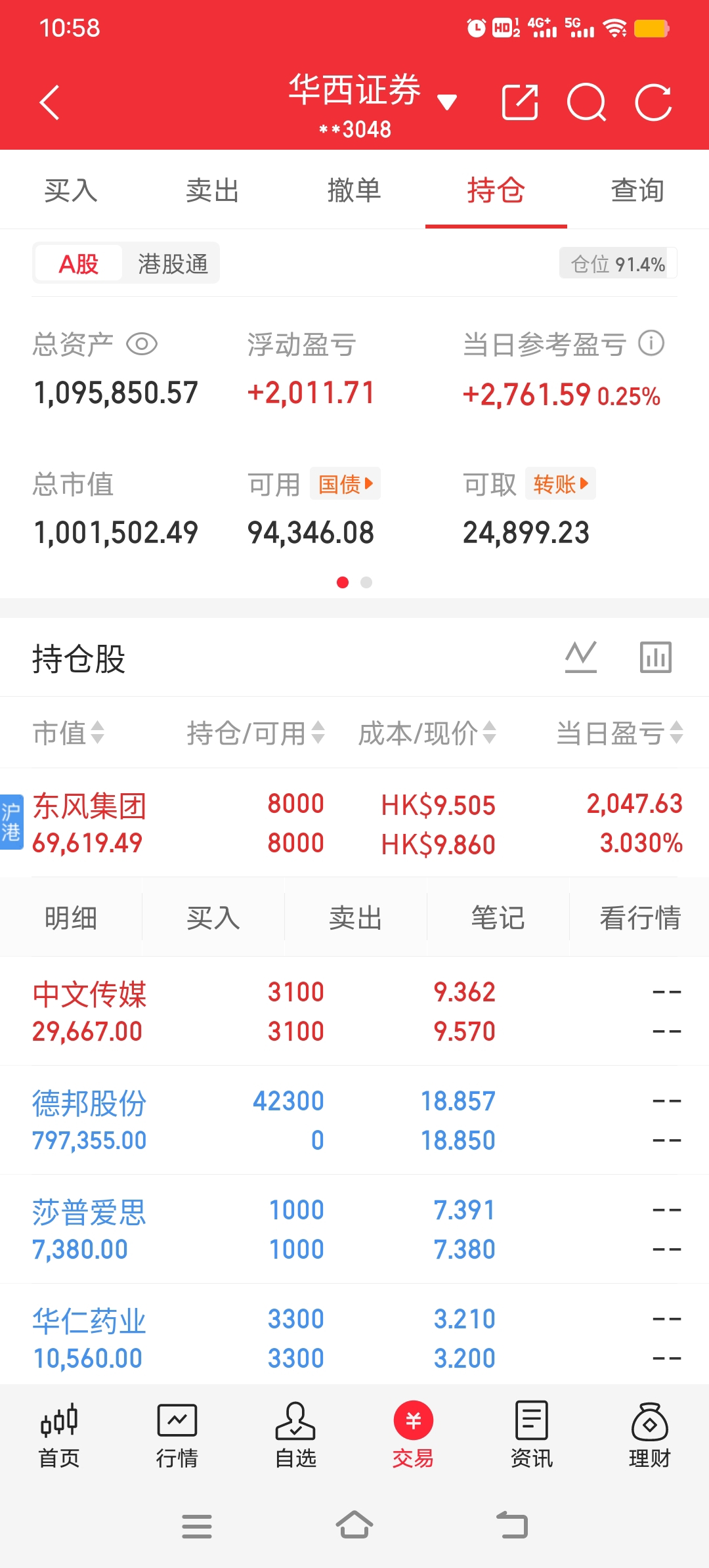 我们来重新计算一下,在当前东风集团股价 9.890港元 时的套利空间: