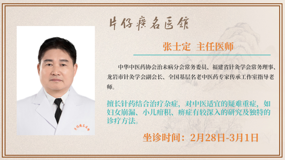 片仔癀名医馆是片仔癀公司为助力“圆山计划”五大工程建设,强化“名医带产业、产业引名医”,通过科学布局,多渠道、多层次引进名医来漳坐诊、授业,全力打造的中医汇聚平台、中医药健康服务高地,也是漳州市首家以传统中医为特色,集诊疗、养生保健为一体的中医医疗机构。