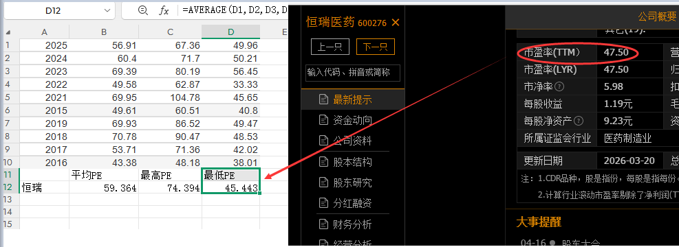 恒瑞这种没有非经常性损益造成扣非和归母有“巨大”落差,以及每一年的利润不会出现突然腰斩情况的公司,采用历史PE不需要看扣非,也不需要跳出来截取,直接取最接近现在的十年就能大差不差了(20年最低71那个数值直接超过近十年最低22年的33倍数剔除(取数值做平均值统计这种一下少一半以上或者一下增加一倍以上的异常数值需要剔除,属于非“常态”情况),取上一年就行)