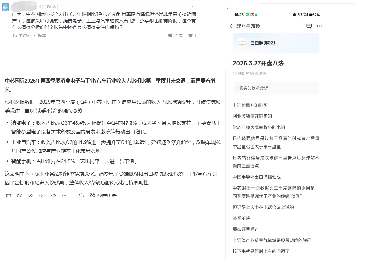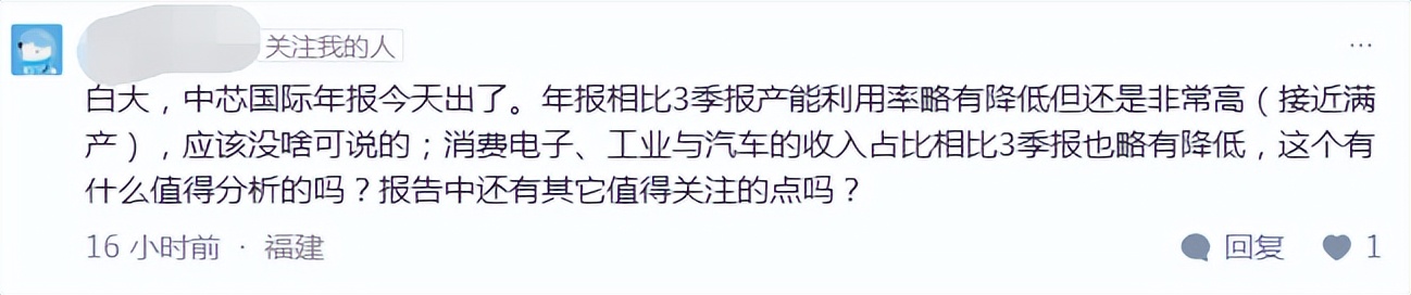 早上开盘八法中提及的4季度相比3季度环比减少的,比如毛利率,归母净利润等(昨晚看新闻的内容)就是我早上说的那个原因,四季度是晶圆代工的“传统”淡季
