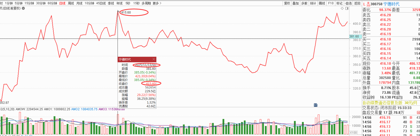今天有突破,只要不收盘跌破,就有可能是宁德时代,“新”趋势的开启点