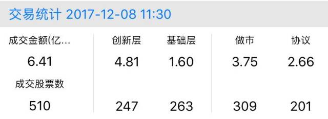 【新三板+】12月8日讯,据“新三板+” App AiLab 显示,午盘市场总成交6.41亿,1359家创新层企业中,247家公司成交4.81亿, 263家基础层公司成交1.60亿。201家协议转让公司成交2.66亿,309家做市转让公司成交3.75亿。