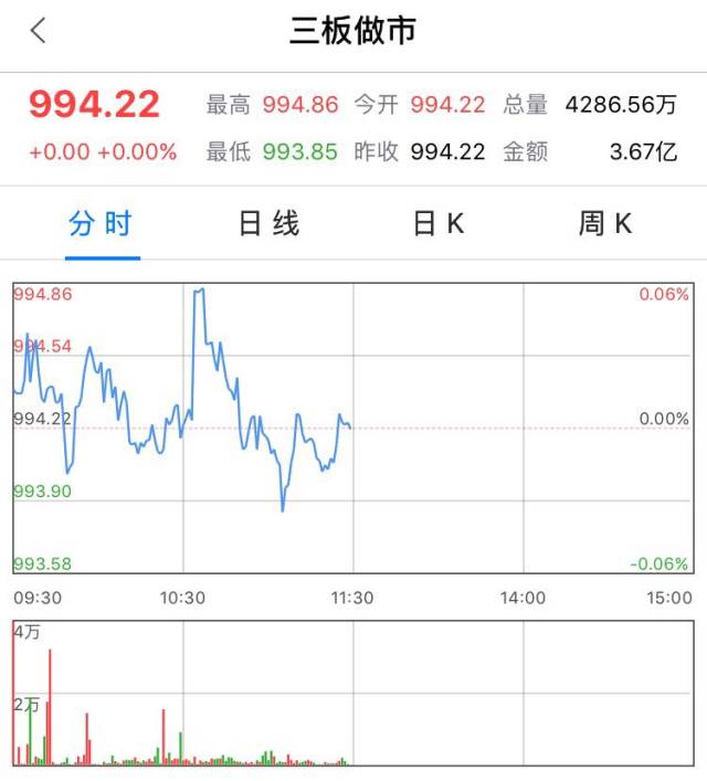 6、做市指数今以994.22点开盘后持续震荡,呈心电图走势,午间平盘收局。