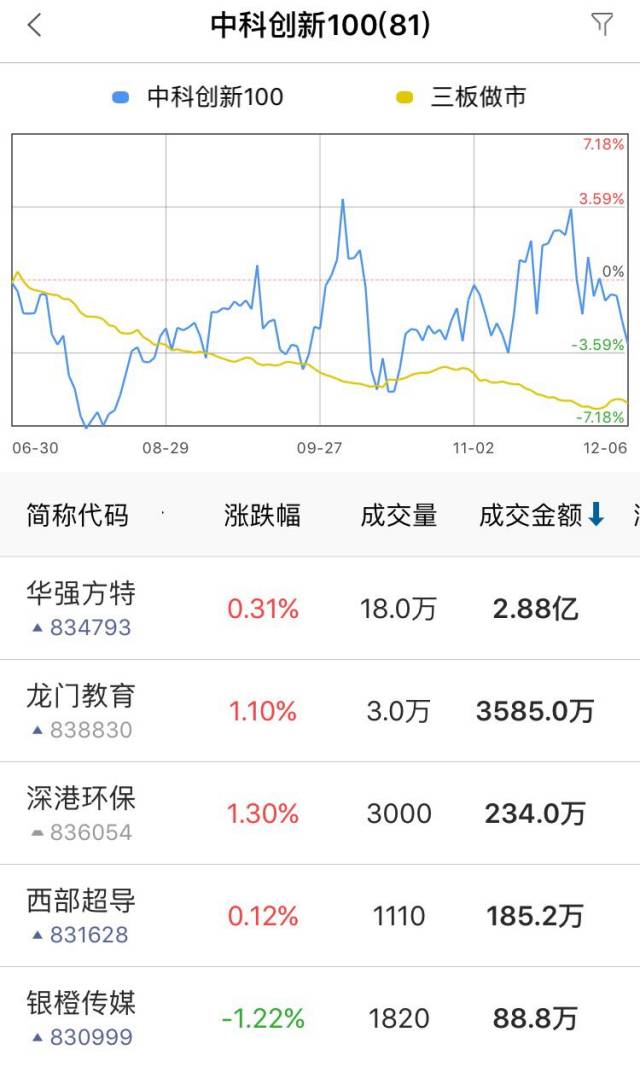 1、据“新三板+”三十主题概念板块之一“中科创新100”显示,华强方特成交2.88亿元居首位,龙门教育成交3585万元位列第二,深港环保成交234万元排第三。