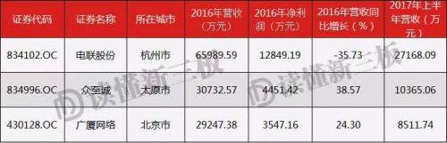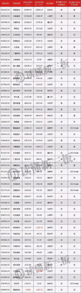 所以未来行业的最大赢家,绝不可能一蹴而就,必然是当下已有一定规模并且正处于快速成长的企业。读懂君根据连续两年位于创新层、2016年营业收入在2亿以上的标准,筛选出3家新三板企业。