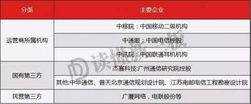 通信网络基建服务市场的主要竞争参与者主要有三类:电信运营商、通信设备供应商以及第三方通信网络服务企业。