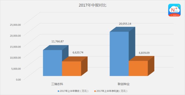 回看隆平高科看中的两家新三板企业:主打杂交向日葵种子的三瑞农科和主打杂交玉米种子的联创种业,两家企业2017中报均保持着出色的盈利能力,但是据三瑞农科发布的2017年业绩快报显示,由于向日葵种子销售量的大幅减少,2017年全年盈利将下滑44.08%。