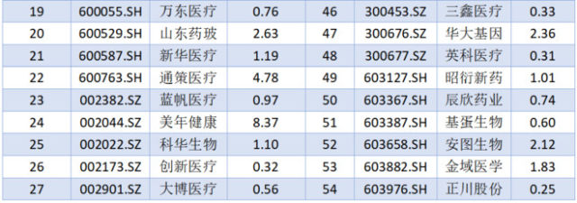 根据中证指数官网公布的最新数据,该指数成份股共54只,具体情况如下: