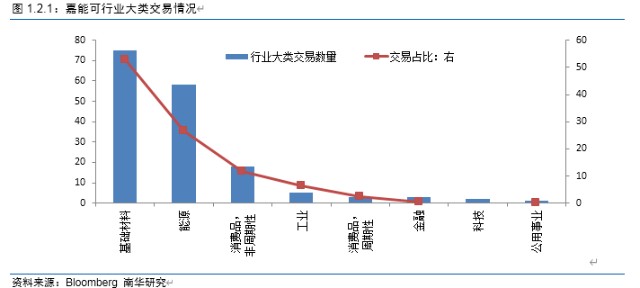 从收购、并购的企业类型也可以看出嘉能可涉及的行业主要是由基础材料构成,在本文第1章也提到过。这里不再赘述。
