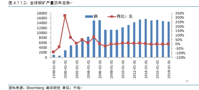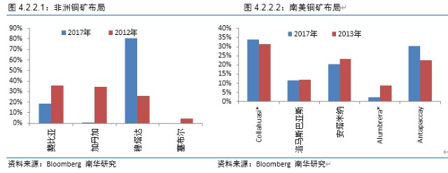 比较去看,南美地区铜矿资源分布比较稳定。非洲地区铜矿资源分布不稳定,总体呈现此消彼长的特点。Mopani和Katanga铜矿资源占比逐渐下降,Mutanda铜矿资源占比日趋增长。