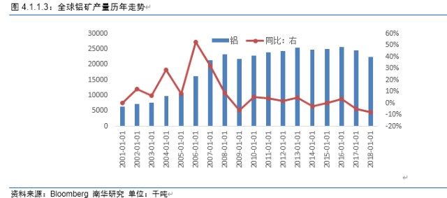 2011年~2016年,全球大宗商品价格高位回落,LME铝也不例外,期间LME铝价下跌了41.3%。
