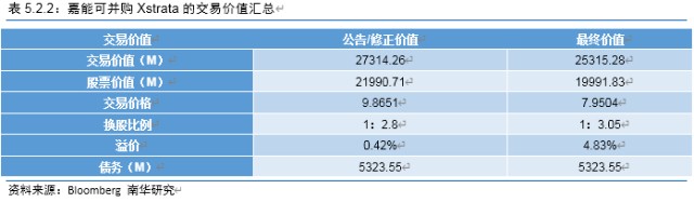 在嘉能可并购史中,最有名的莫过于其并购Xstrata,历时451天,该次并购属于换股收购。