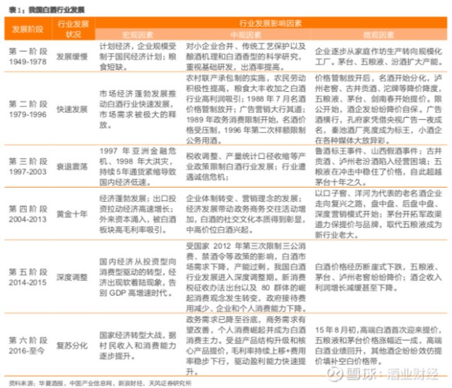 总体上来看,建国至今,白酒行业的发展呈现出四大特征:一是,从低端到高端的衍进;二是行业第一名不断更替;三是渠道变革上从大商制向深度分销、多元分销转变。