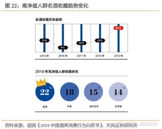 根据胡润百富发布的《2019 中国酒类消费行为白皮书》,预计 2020 年高端白酒市场规模有望突破 1800 亿。消费量方面,目前我国高端白酒消费量约为 7 万吨,预计 2-3 年将扩容至 8-9 万吨。