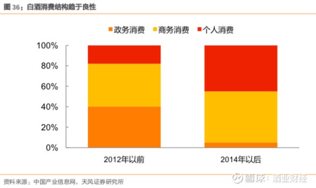 自2012年政务限酒令出台后,高端白酒的政务消费需求大幅萎缩,当前,高端白酒的政务消费比例已经由 40%降至当前的 5%以内。