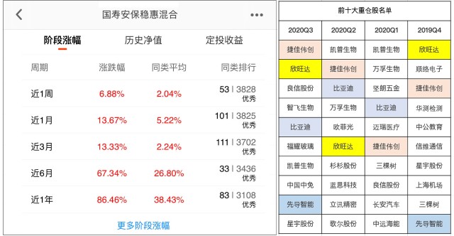 另外一位“主攻”的宝藏基金经理吴坚,相信大家都比较熟悉了,司令的“股债王者”组合中也有他管理的国寿安保稳惠混合。吴坚是宏观和策略研究员出身,具备良好的“自下而上”宏观思维,能够更好把握政策引导下的产业格局变化。Choice数据显示,截止2020年11月5日,其管理的国寿安保稳惠近一年收益率86.46%,并且各个阶段业绩排名都是“优秀”(同类排名近前2%),如果之前还在惋惜没有买到王亚伟管理的十年十倍基金,如今同样具备优秀潜质的绩优基金值得拥有。