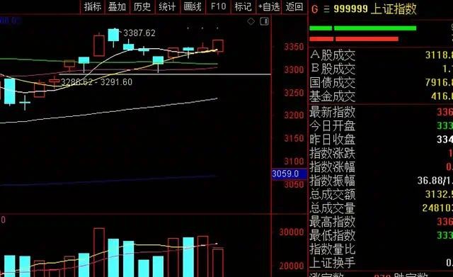 (4)因为当前大盘所处在重要的套牢盘区域,大盘指数自从7月13日涨到3458点之后,大盘指数始终保持在这里震荡,已经套住很多筹码。