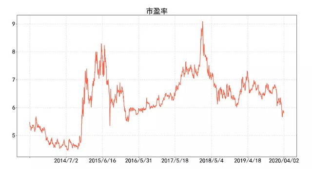 成立以来的市盈率最高值是2018年2月的9左右,最低值是2014年7月的4.5左右。