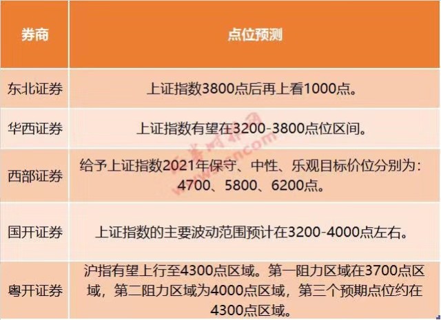 首先是对于明年股市整体预测。对于股市的大趋势,大多数券商还是保持乐观,甚至不少券商都将认为A股仍会“维持”牛市行情。最为乐观的应该属西部证券,其预计明年国内经济复苏或将换挡至“主动扩张”,并驱动A股朝着“2007年牛市”的方向发展。也有不少证券公司表示,明年可以保持乐观,但策略方面还是要谨慎一点。比如东莞证券就认为,明年随着货币政策回归常态,股市面临高位震荡的压力。