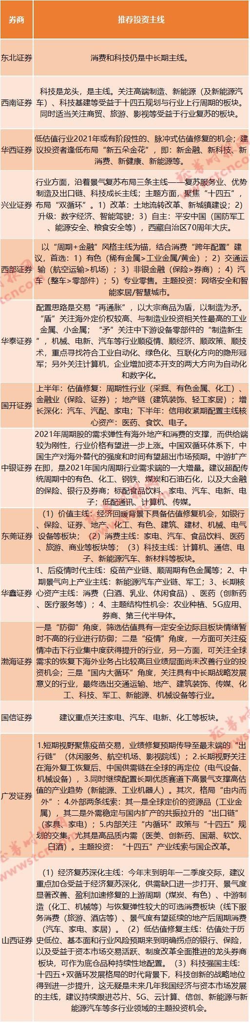 对于板块 ,几乎所有的券商都一致看多大宗商品,认为2021年,大宗商品还是有很多机会的。这符合我们的预期,前几天老伊也写了一篇关于2021年投资市场的相关预测,其中也提及了商品类投资的机会。其实投资逻辑很简单,无外乎就是海外货币放水和全球经济复苏两方面。如果再将商品类资产进行细分,那么金属类尤其是有色金属的投资机会比较大,原油类资产的投资机会应该放到商品类的末端,但总体来说都有机会。