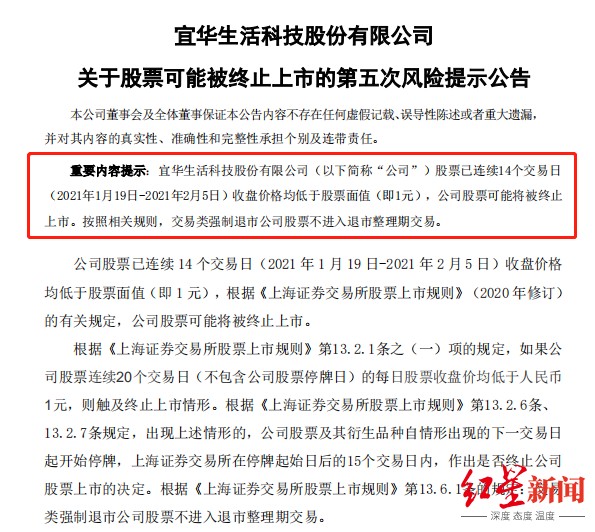 退市新规发布以来,首只触发交易类强制退市的公司提前锁定,它就是宜华生活(*ST宜生,600978.SH)。