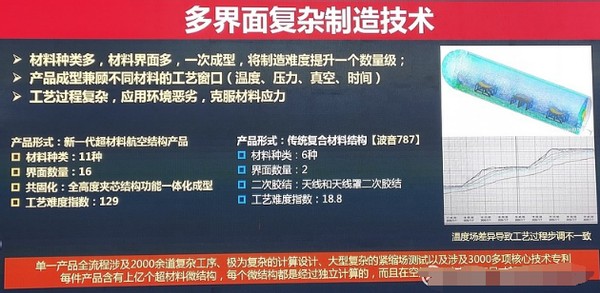 经过十几年的发展,超材料已经成功蜕变和发展成为我国军工新一代尖端装备的主流技术。比如说飞机结构,它不仅是力学结构,具有保证飞机能正常飞行的强度、防雷击、防雨蚀等功能,还在这些结构中融合通信、探测、接收信号、调制信号、反馈信号等所有传感功能,以适应多频谱和复杂电磁环境下的任务的执行。这样的装备结构不仅仅是一种力学结构,还是智能结构、功能结构,这种结构的功能化是航空装备最重要的跨代特征。