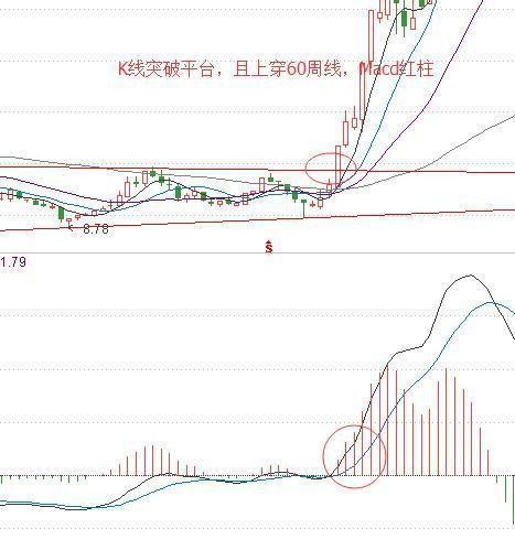 周线突破平台或者生命线(60均线买入法)注意的技术要点: