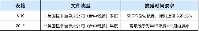 2、年报上则用20-F表格,时间上最晚需要在财年结束的4个月内披露。