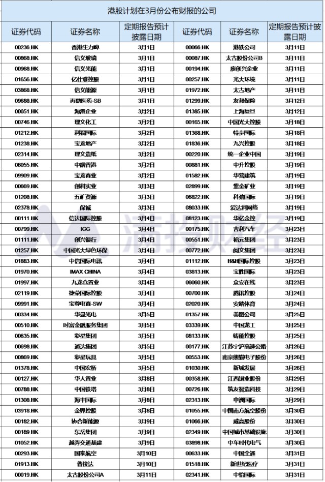 好了介绍完相关的港股公布的政策,下面来看看3月份有哪些港股将发布财报?3月份还是有很多知名企业将公布财报,像统一企业、腾讯控股、吉利汽车等个股,小伙伴点击关注,抓紧收藏起来。