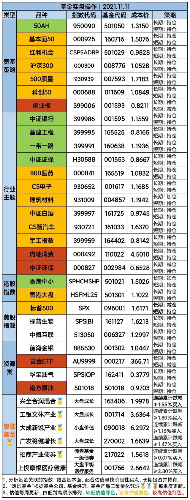 卖出观望:创业板、黄金ETF。