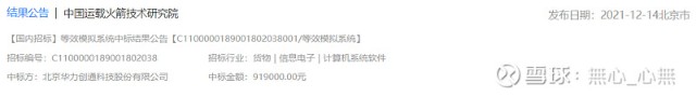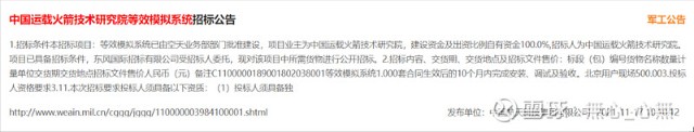 中标中国运载火箭技术研究院等效模拟