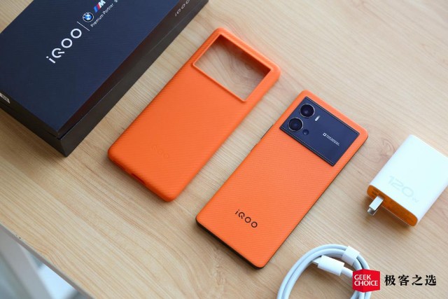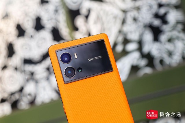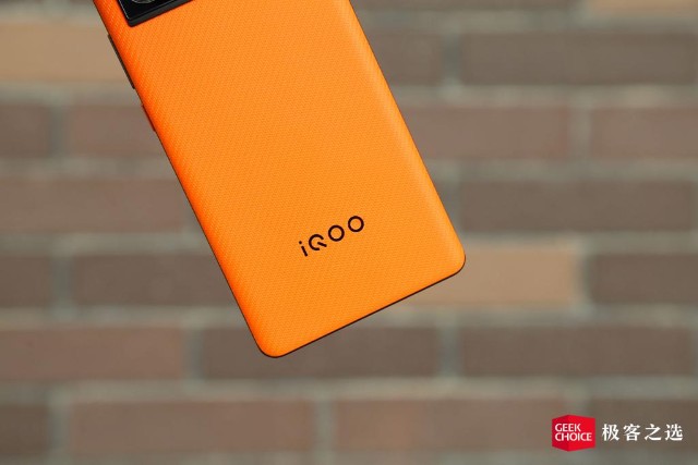 像前几代一样,iQOO 9 Pro 也提供了两种配色版本,我们手中非常亮眼的橙色版被官方称之为「燃擎」,此外还有经典的传奇版可供选择。「燃擎」脱胎于之前的「赛道版」,你可以发现,它将赛车运动中经典的碳纤维元素运用到了后盖上,仔细观察甚至能看到表面细细的纤维纹理,摸上去也有碳纤维那种富有层次的手感。而在后壳材质方面,「燃擎」版采用的是素皮材料,碳纤维纹理实际上是通过特殊的压印工艺实现的,处理方式非常巧妙,而另一款传奇版则为 AG 玻璃后盖。