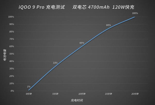 iQOO 是比较早用上 120W 闪充的厂商,它的充电方案也相对更成熟一些。这次 iQOO 9 Pro 首先在电池上进行小幅提升,虽然依旧是双电芯方案,但容量增加到了 4700mAh,利用 120W 快充可以在 20 分钟左右完全充满,其中充至 50% 只需要用 7 分钟左右,稍不留神就回血了。另外,这次附带的充电器也改成了 C 口,而且体积也变得更小一些,同时还兼容 65W PD 和 PPS 协议,这也就意味着可以给你的笔记本供电。