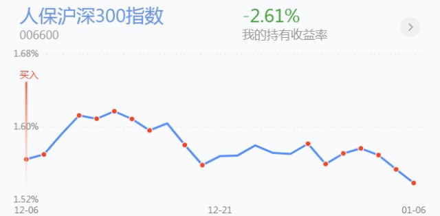 2.定投买入 人保沪深300指数 1000元,沪深300去年的表现较差,或许今年会有风格切换,我们慢慢的开始做定投布局是没有问题,里面的大多数公司经过了长期的缩量整理,还是具有一定的投资价值了,慢慢买入等待风口到来就好。