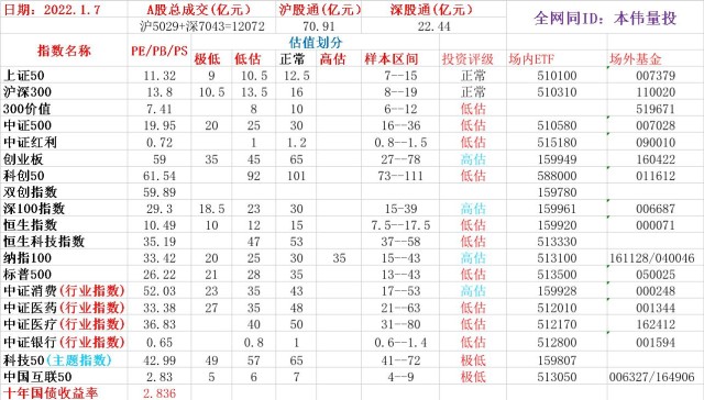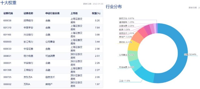 300价值是依据价值因子,从沪深300指数成分股中选出的100只股票,我就不解释价值因子和成长因子了,毕竟我也不太会,我比较直观的将数据列出来,方便我们理解,数据截止2022年1月6日: