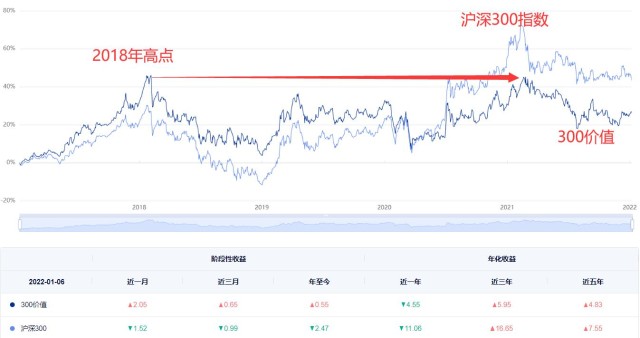 2018年年初的那个高点是300价值心里永远的痛,至今迈不过去,但是我们通过对比,还是会发现,价值风格并非一无是处,沪深300指数大幅跑赢300价值,其实是2020年3月份以后的事情,至于原因我猜可能还是白酒估值的提升。