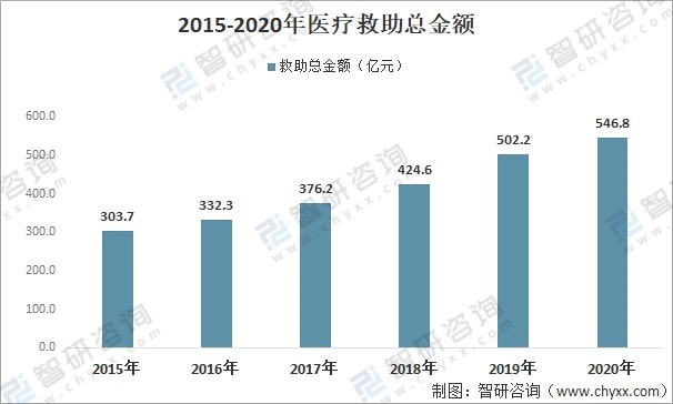 2015-2020年医疗救助总金额