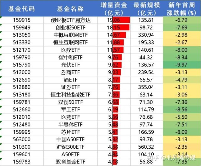 资金净买入较多的ETF中,宽基类以创业板指最受关注,上周创业板大跌6.8%;概念类主要集中在中概互联、药酒、光伏、券商、半导体等行业,其中券商受全面注册制影响较大。