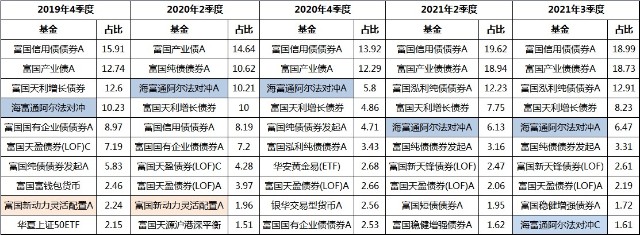 表:富国鑫旺稳健养老前十大重仓基金