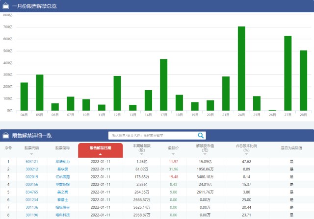 限售解禁一览