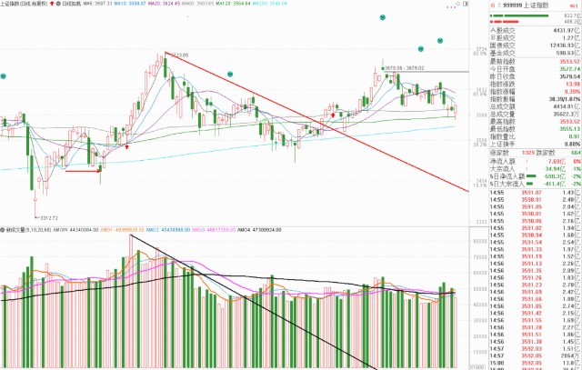 我们当然也看到散户投资者往往在这种地方,心理状态是很不稳定的,但是对我们来说,我已经反复多次给大家讲过了,60天均线往上120天均线往上,下方250天均线都往上,大级别均线都往上,所以这种地方拉回来不用恐慌,拉回来站在买方。
