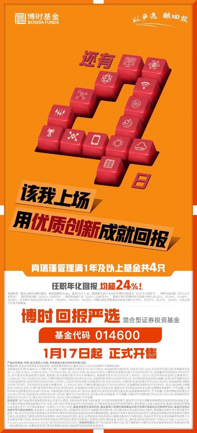 风险提示:基金不同于银行储蓄和债券等固定收益预期的金融工具,不同类型的基金风险收益情况不同,投资人既可能分享基金投资所产生的收益,也可能承担基金投资所带来的损失。基金管理人承诺以诚实信用、勤勉尽责的原则管理和运用基金资产,但不保证本基金一定盈利,也不保证收益,基金净值存在波动风险,基金管理人管理的其他基金业绩不构成对本基金业绩表现的保证,基金的过往业绩并不预示其未来表现。投资者应认真阅读《基金合同》、《招募说明书》及《产品概要》等法律文件,及时关注本公司出具的适当性意见,各销售机构关于适当性的意见不必然一致,本公司的适当性匹配意见并不表明对基金的风险和收益做出实质性判断或者保证。基金合同中关于基金风险收益特征与基金风险等级因考虑因素不同而存在差异。投资者应了解基金的风险收益情况,结合自身投资目的、期限、投资经验及风险承受能力谨慎决策并自行承担风险,不应采信不符合法律法规要求的销售行为及违规宣传推介材料。本材料中所提及的基金详情及购买渠道可在管理人官方网站查询—博时基金-基金产品, 博时基金相关业务资质介绍网址为:http://www.bosera.com/column/index.do?classid=00020002000200010007。