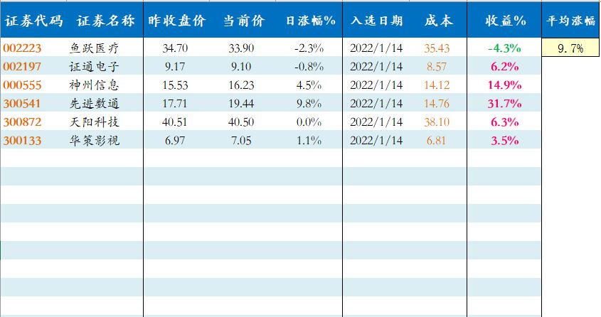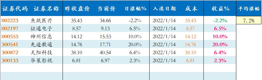 上周末优选个股走势还不错,平均 7.2%