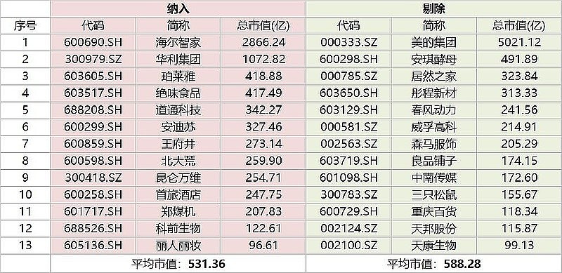 至此,中证消费龙头指数完成大换血,成份股还是50只维持不变。根据上交所2021.12.10披露PCF清单,新纳入的13只成份股合计权重估算为7.38%。